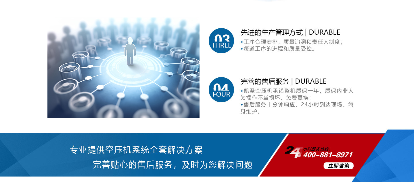 合肥凱圣節(jié)能科技有限公司是從事永磁變頻螺桿壓縮機系統(tǒng)的設計、制造、安裝、調(diào)試、維修與一體的公司。 在多年的螺桿空壓機研發(fā)與推廣歷程里,凱圣聚集和培養(yǎng)了大量壓縮機技術設計和管理人員,迅速發(fā)展成為集研究、生產(chǎn)、銷售、服務等環(huán)節(jié)為一體、嚴格按照標準執(zhí)行的企業(yè),公司成立開始,即以滿足客戶的實際需求為己任,大力開拓國內(nèi)外節(jié)能型空壓機市場,并始終保持創(chuàng)新精神,全力研發(fā)更為節(jié)能的螺桿式空壓機,努力站在空壓機節(jié)能領域的排頭位置。 應用范圍:公司產(chǎn)品廣泛應用于機械、輕工、紡織、食品、石油、化工、冶金、礦山、電力、城建、醫(yī)學研究和科研等各行業(yè)中,將為節(jié)約能源做出巨大貢獻。公司秉承“信譽至上,...
